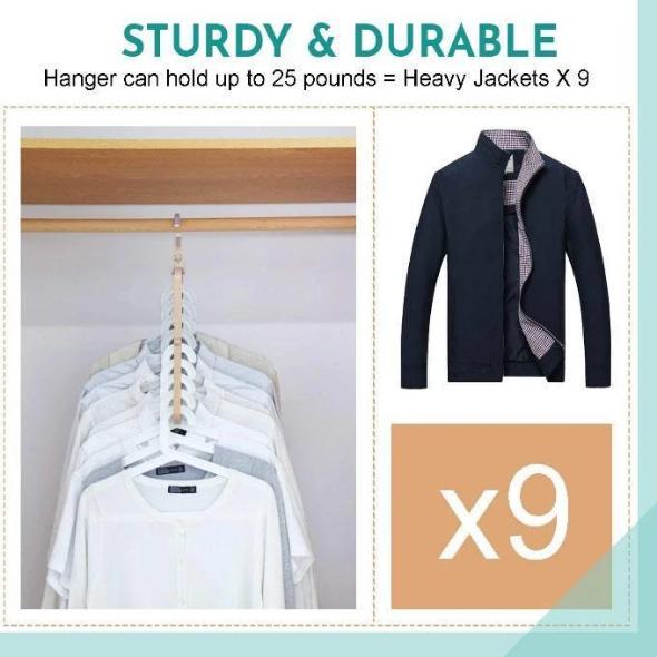 Εξοικονόμηση χώρου: Ποτέ ξανά δεν είχατε τόσο χώρο στις ντουλάπες σας. Ουσιαστικά, είναι εννέα (9) κρεμάστρες σε μία (1) με αποτέλεσμα, την άμεση οργάνωση και την αύξηση του αποθηκευτικού σας χώρου έως και ογδόντα (80) τοις εκατό.